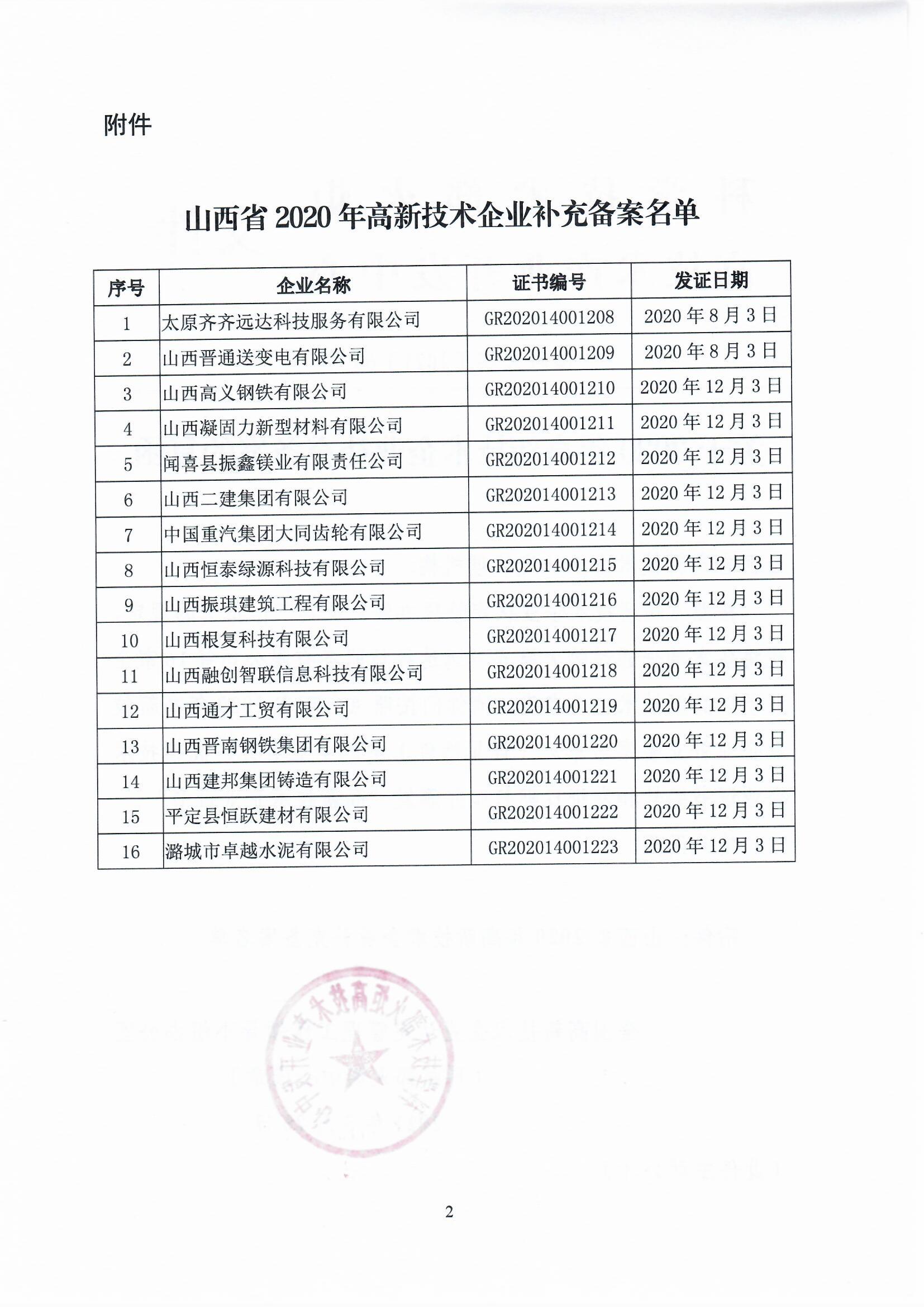 2021年3月26日,全國(guó)高新技術(shù)企業(yè)認(rèn)定管理工作領(lǐng)導(dǎo)小組辦公室將備案抽查通過的太原齊齊遠(yuǎn)達(dá)科技服務(wù)有限公司等16家企業(yè)予以高新技術(shù)企業(yè)備案,具體如下: