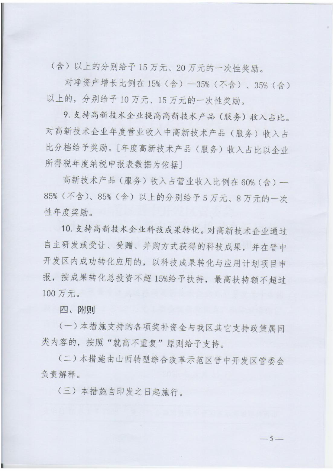 山西綜改示范區(qū)晉中開發(fā)區(qū)管委會關于印發(fā)示范區(qū)晉中開發(fā)區(qū)推動高新技術企業(yè)高質量發(fā)展十條措施的通知